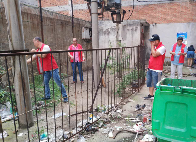 全體黨員志愿者身著紅馬甲,組織有序,分工明確,有的手拿撿拾器和塑料袋,對小區(qū)綠化帶、地面雜物和衛(wèi)生死角進行了清潔打掃,有的手拿小鐵鏟對粘貼在墻上的小廣告進行了清除,有的推著小車將樓道內(nèi)的雜物運走。時值盛夏,烈日當頭,氣溫達到36度以上,志愿者們被熱浪包圍,汗水濕透了衣衫,卻沒有一個人放松懈怠,大家不怕臟,不怕累,干勁十足,毫無怨言。一個多小時后,在志愿者們的齊心協(xié)力下,將小區(qū)打掃的煥然一新,徹底解決了小區(qū)存在的臟、亂、差問題,居民們紛紛點贊。