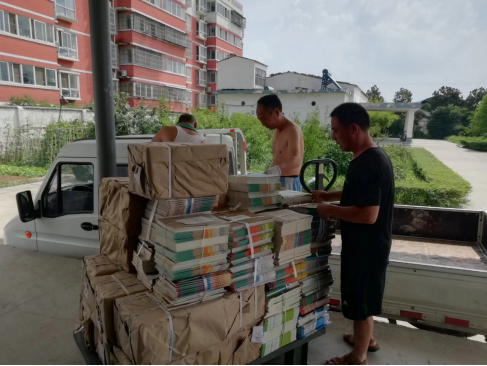 遂平縣店戰(zhàn)高溫、冒酷暑做好教材教輔收發(fā)工作