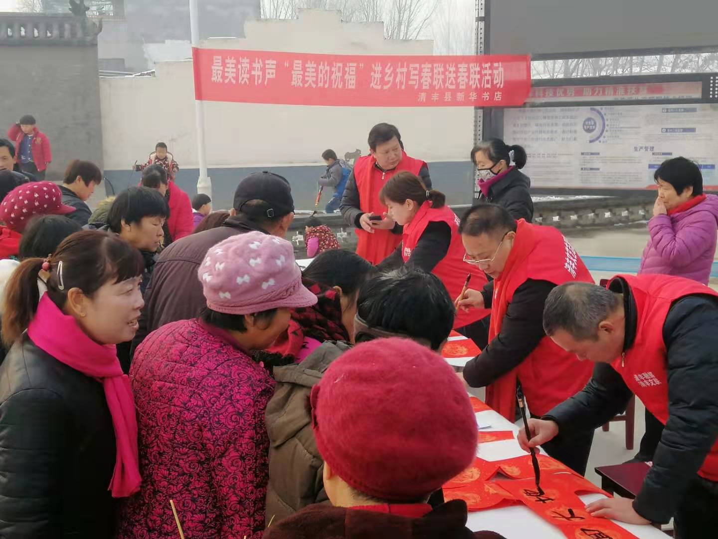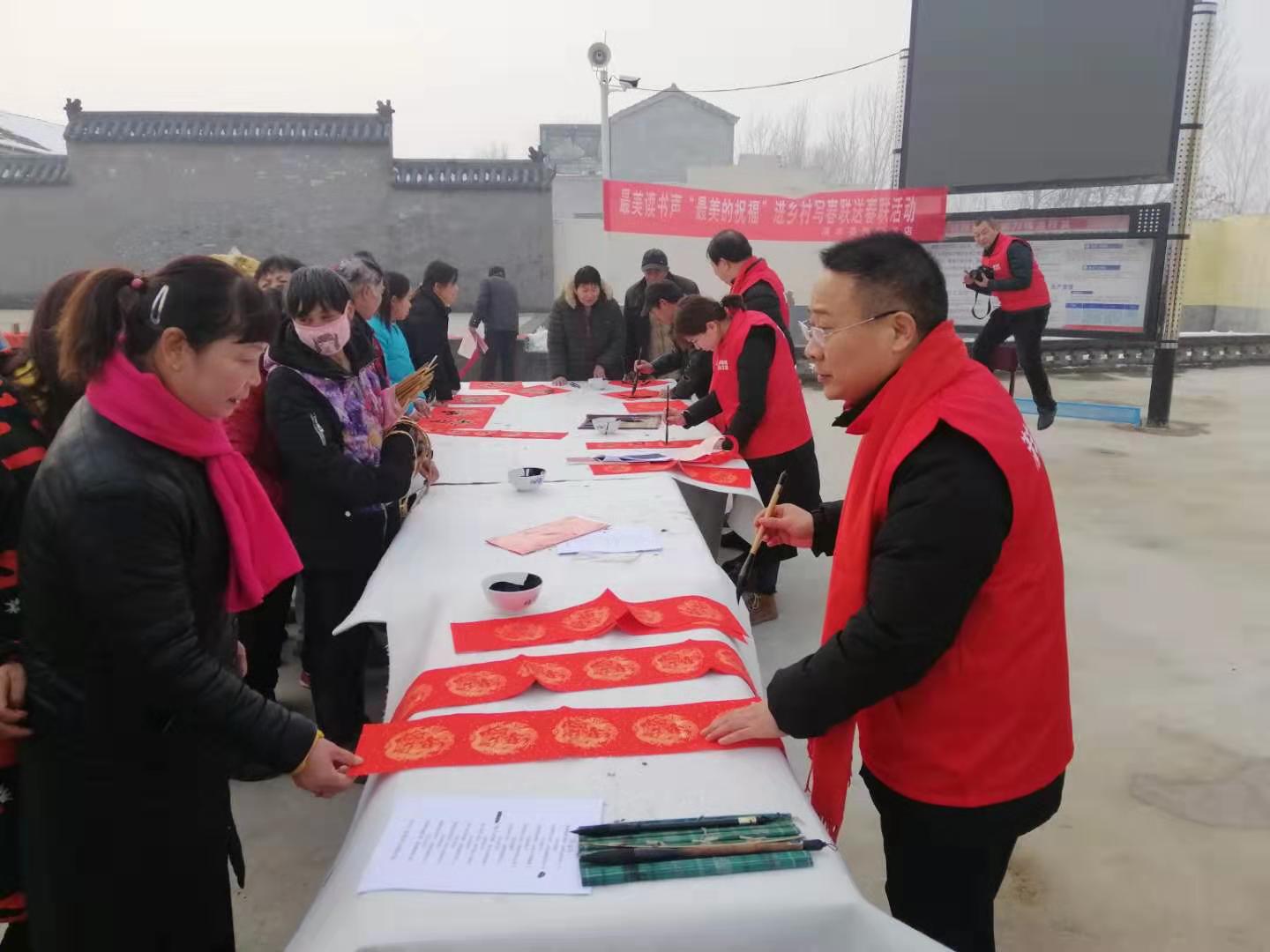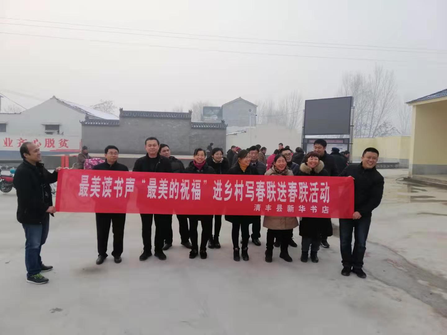 1月17日下午,清豐縣新華書店邀請清豐縣文聯書畫名家到大流鄉(xiāng)劉圈村開展“最美的祝!庇履陮懘郝撍痛郝摶顒。