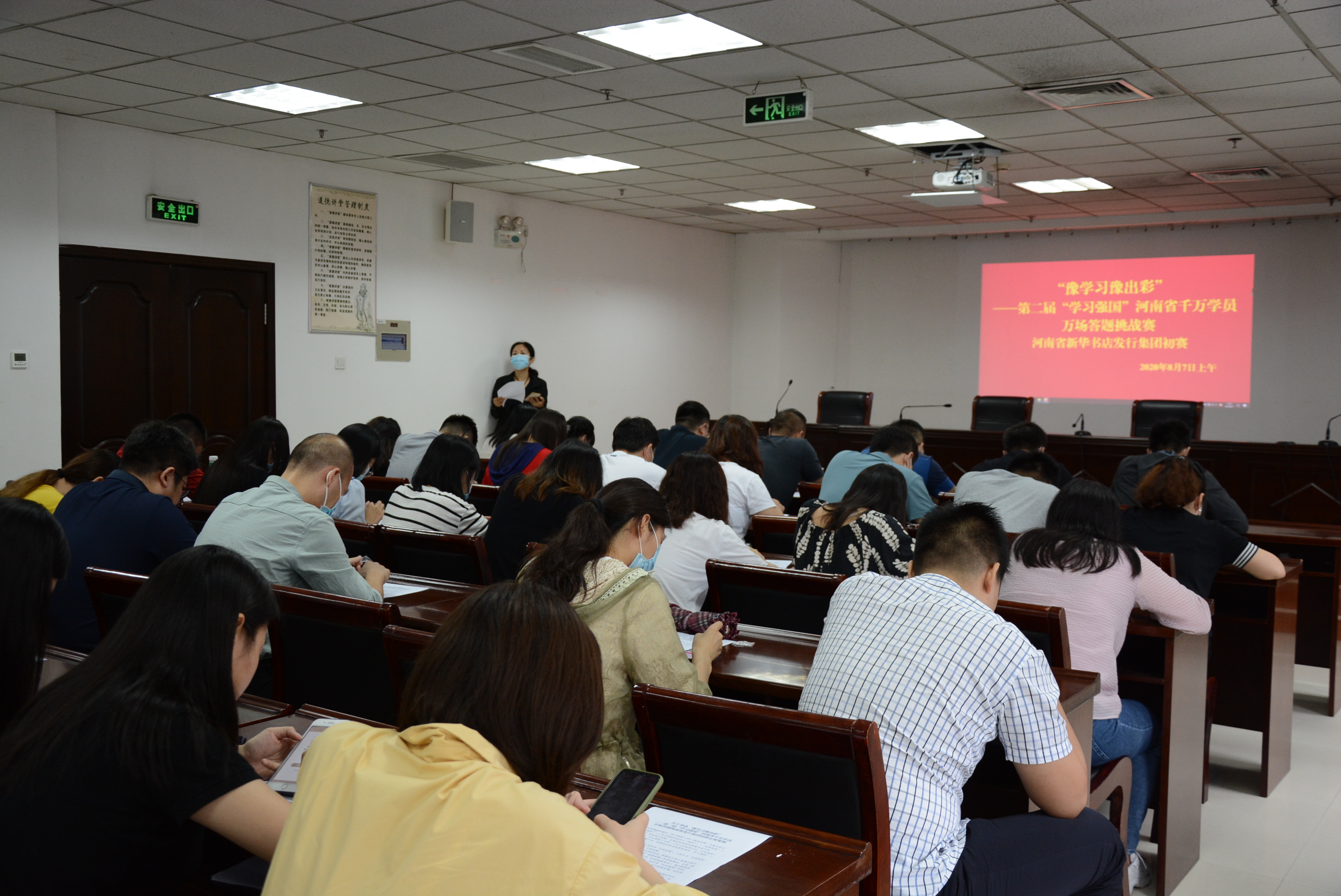 為深入貫徹落實習(xí)近平總書記關(guān)于加強學(xué)習(xí)、建設(shè)學(xué)習(xí)大國重要指示精神,建好、辦好、用好“學(xué)習(xí)強國”學(xué)習(xí)平臺,進(jìn)一步提高廣大黨員干部群眾學(xué)習(xí)積極性,按照省委宣傳部組織開展“‘豫學(xué)習(xí)豫出彩’——第二屆“學(xué)習(xí)強國“河南省千萬學(xué)員萬場答題挑戰(zhàn)賽活動的通知要求和中原出版?zhèn)髅郊瘓F公司黨委的具體部署,發(fā)行集團黨委于8月7日上午組織開展“豫學(xué)習(xí)豫出彩”——第二屆“學(xué)習(xí)強國”河南省千萬學(xué)員萬場答題挑戰(zhàn)賽發(fā)行集團初賽,來自本部各支部的44位選手參加了比賽。