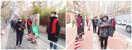 發(fā)行集團(tuán)志愿者不畏寒冷,按照要求提前趕到采樣點(diǎn),做好服務(wù)準(zhǔn)備工作。采樣期間,志愿者們根據(jù)工作分工,有的負(fù)責(zé)引導(dǎo)市民、維護(hù)現(xiàn)場秩序,提醒大家保持“一米線”距離,有序檢測,同時(shí)解答群眾詢問;有的志愿者專門負(fù)責(zé)把守等候區(qū),將排隊(duì)人員10人歸為一組,有序前行進(jìn)行掃碼確認(rèn),到達(dá)核酸集采處完成采樣。中午時(shí)分,志愿者輪流就地用餐,工作不曾停歇,忠誠值守完成當(dāng)天工作任務(wù)。