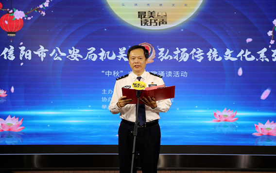 為大力弘揚中華民族傳統(tǒng)文化,9月6日下午,信陽市公安局機關在新華書店中心書城隆重舉辦弘揚傳統(tǒng)文化系列之“中秋”主題詩歌誦讀活動。信陽市公安局、市新華書店相關領導出席活動。