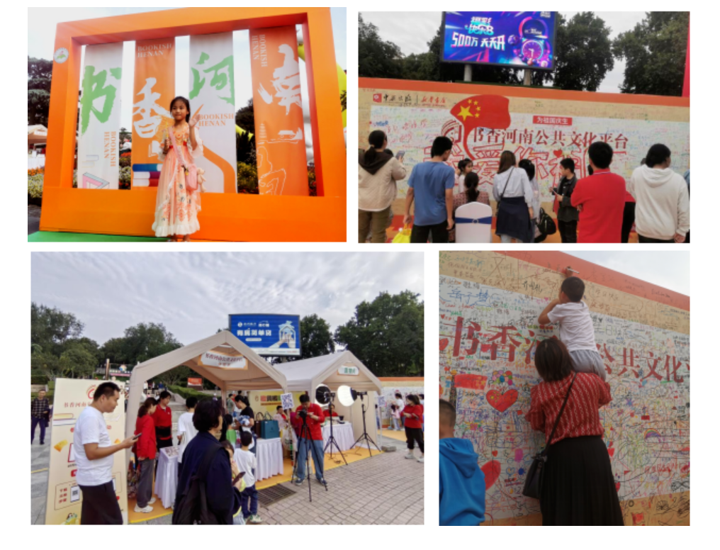 在活動(dòng)主會(huì)場(chǎng)鄭州市紫荊山公園,公益捐贈(zèng)、圖書交換、非遺文創(chuàng)、愛國(guó)彈幕、詩(shī)詞打卡、藏書票集章等互動(dòng)體驗(yàn)活動(dòng)打卡超1萬人次,現(xiàn)場(chǎng)游覽書展7.3萬人次,線上平臺(tái)瀏覽互動(dòng)超2000萬人次;顒(dòng)中,書香河南公共文化平臺(tái)得到有效推廣,新增用戶12156人,總用戶量7.18萬,瀏覽量84萬次。