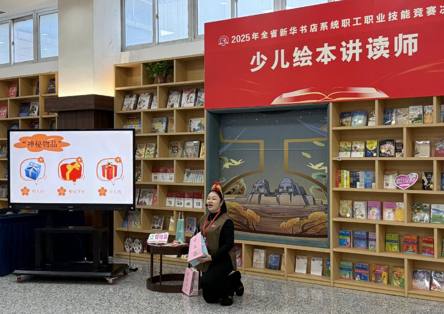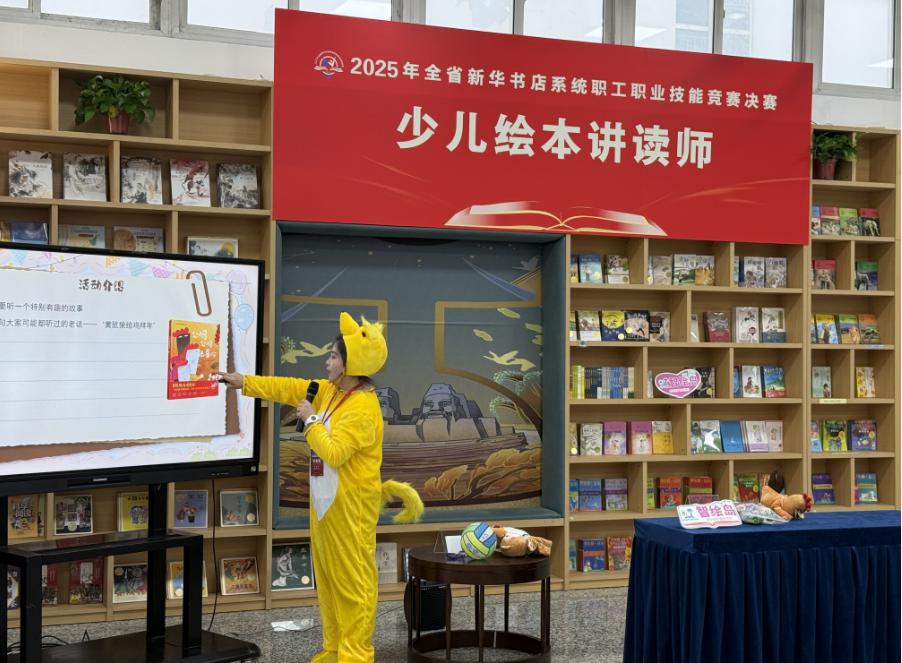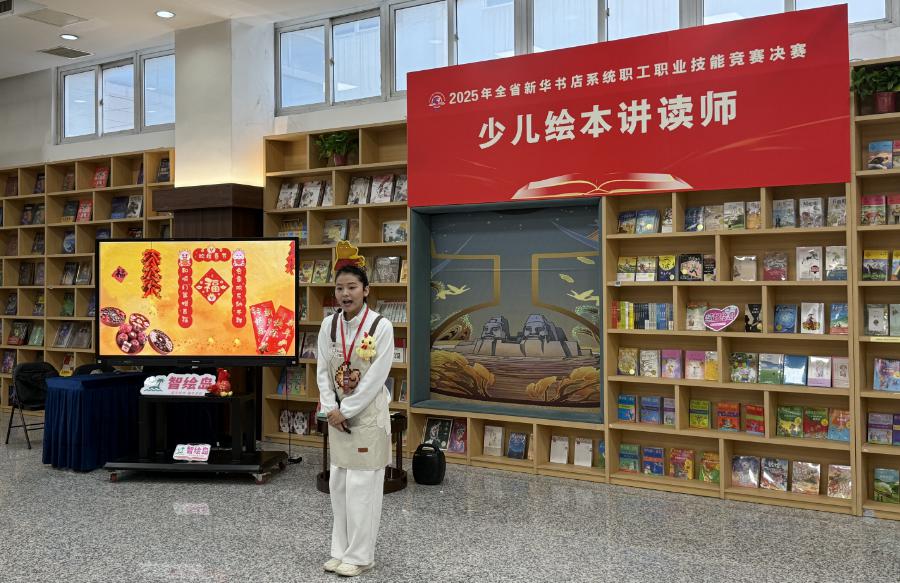 本次大賽堅持“圍繞中心、注重實戰(zhàn)、服務發(fā)展”的辦賽理念,緊扣圖書發(fā)行、閱讀服務、創(chuàng)新業(yè)務發(fā)展等核心領域,設置圖書造型及融合美陳、直播薦書、門店研學導師和少兒繪本講讀師四個競賽項目。賽事設置上,既有對傳統(tǒng)業(yè)務技能的鞏固提升,也有對新技能、新模式的探索實踐;賽事規(guī)則上,既考驗基礎功底,更注重考察創(chuàng)新能力。 決賽現場氛圍緊張熱烈,各項目角逐亮點紛呈。圖書造型及融合美陳項目賽場,選手們巧手翻飛,將一本本圖書打造成寓意深刻的藝術造型,讓書香與美學完美交融;直播薦書項目賽場,選手們化身專業(yè)主播,以生動講解、互動演示精準傳遞圖書核心價值,展現出新時代圖書發(fā)行的創(chuàng)新表達;門店研學導師項目賽場,選手們結合本土文化特色,將文學、歷史、科學等多領域知識融入研學課程,把“五育融合”具象為可感知、可參與的實踐體驗;少兒繪本講讀師項目賽場,選手們化身“故事魔法師”,以精巧靈動的設計、充滿童趣的互動,展現出少兒閱讀的精彩體驗。比賽間隙,選手們相互交流經驗、切磋技藝,在比拼中找差距、在交流中促提升,充分彰顯了“比學趕超”的良好氛圍。