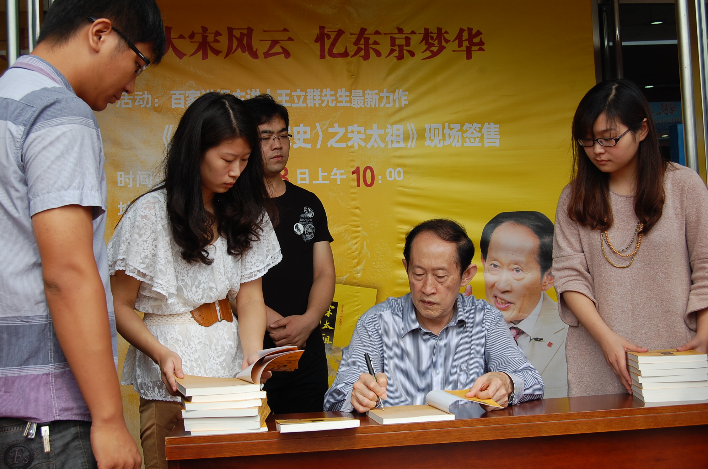 上午,河南大學(xué)教授、“百家講壇”主講人王立群先生,攜新作《王立群讀宋史之<宋太祖>》在中原圖書大廈舉行新書見面會。在現(xiàn)場,數(shù)千名讀者排隊(duì)等候,還有很多喜愛和關(guān)注王立群的讀者朋友從全省各地趕來,想在第一時(shí)間看到新書,和大師面對面交流。由于簽售現(xiàn)場異;鸨蜔崃遥顒右恢背掷m(xù)至中午,長達(dá)3個(gè)小時(shí)。