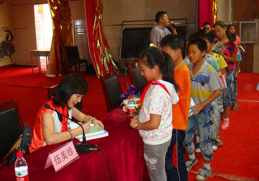 伍美珍被稱為“陽光姐姐”,她曾是“陽光姐姐熱線”主持人,專為小讀者排憂解難。自2000年起,她在內(nèi)地和港臺三地共出版了70余部少兒題材的小說和報告文學作品,曾獲文化部“蒲公英少兒讀物獎”及新聞出版總署“全國優(yōu)秀少兒圖書獎”“冰心兒童圖書獎”等。為了開展好本次活動,切實通過名家效應提升新華品牌,拉動一般書銷售,發(fā)行集團公司非常重視本次巡講活動的方案策劃、行程安排、具體落實等方面工作,早在6月份就已經(jīng)推出了方案細則,后又經(jīng)過多次與基層書店、出版社以及伍美珍本人的溝通商量,最終保證了伍美珍校園巡講簽售活動的圓滿舉辦。