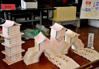 此次圖書發(fā)行員技能大賽是市總工會和新華書店第五次聯(lián)合舉辦技能大賽,與住屆大賽相比,今年的比賽難度和準(zhǔn)備工作量增加了,可選手們的自信心和熟練程度卻一點(diǎn)沒減。在比賽現(xiàn)場,當(dāng)裁判員的開始指令發(fā)出后,臺下選手啞雀無聲,選手們一個個都能鍵指如飛、緊張熟練地將規(guī)定內(nèi)容輸入電腦,現(xiàn)場只有“嗒嗒嗒”的敲擊鍵盤的聲音,在圖書推介比賽項(xiàng)目中,每位選手都能結(jié)合自己推介的圖書特點(diǎn),向現(xiàn)場觀眾進(jìn)行全面、詳細(xì)的推介介紹,贏得了大家熱烈的掌聲,售書連續(xù)作業(yè)主要考核比賽選手的操作準(zhǔn)確度和連慣性,選手們都能做到計價、收款、開票、包扎四個過程一氣呵成,規(guī)定五分鐘的比賽操作,最快的選手僅用了兩分多鐘就全部完成;在圖書造型項(xiàng)目中,比賽選手各顯神通,充分發(fā)揮自己的想象能力,精心設(shè)計、“建造”出別出心裁的造型:有宏偉穩(wěn)固的高塔、有具有詩意的小橋流水、青蛙戲水、有氣勢宏大的古城建筑、也有設(shè)計巧妙的龍舟,還有用圖書拼出的文字“十八大”等,有的圖書造型文化氣息濃厚,有的造型突現(xiàn)時代特征,給人以強(qiáng)烈的視覺沖擊力,全面體現(xiàn)了圖書的文化產(chǎn)品特點(diǎn)。