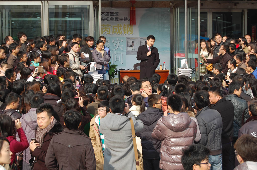 11月24日,芮成鋼又來(lái)到中原圖書(shū)大廈舉行簽售活動(dòng),與讀者面對(duì)面交流13年的傳媒人之路。簽售活動(dòng)前,中原圖書(shū)大廈組織召開(kāi)了媒體見(jiàn)面會(huì),河南日?qǐng)?bào)等多家媒體進(jìn)行了專(zhuān)門(mén)采訪。隨后簽售活動(dòng)持續(xù)了將近3個(gè)小時(shí),共簽售圖書(shū)900冊(cè),效果良好。