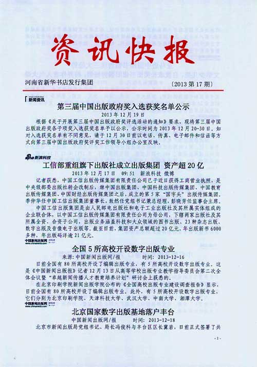 來源:河南省新華書店發(fā)行集團有限公司  作者:河南省新華書店發(fā)行集團有限公司  發(fā)布時間:2013/12/23 12:32:11  閱讀次數(shù):7036