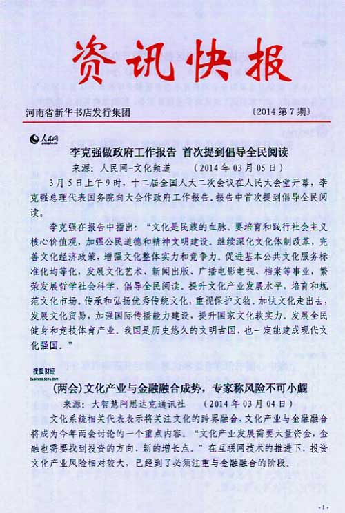 來源:河南省新華書店發(fā)行集團有限公司  作者:河南省新華書店發(fā)行集團有限公司  發(fā)布時間:2014/3/7 10:06:31  閱讀次數(shù):10574