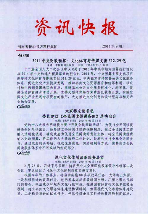來源:河南省新華書店發(fā)行集團有限公司  作者:河南省新華書店發(fā)行集團有限公司  發(fā)布時間:2014/3/14 10:46:22  閱讀次數(shù):12221