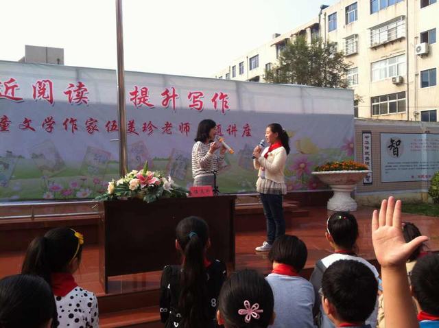 國(guó)慶節(jié)期間,登封市店特邀著名兒童作家伍美珍在登封市北街小學(xué)隆重舉辦了簽售活動(dòng),在活動(dòng)現(xiàn)場(chǎng),數(shù)千師生聆聽(tīng)了伍美珍寫作之路,并與伍美珍進(jìn)行了親密互動(dòng)。本次活動(dòng)共簽售《番茄土豆練練看》《糖葫蘆也瘋狂》《自命不凡的天才》《阿呆穿越筆記》《我們班的小童星》系列圖書1400余冊(cè)。