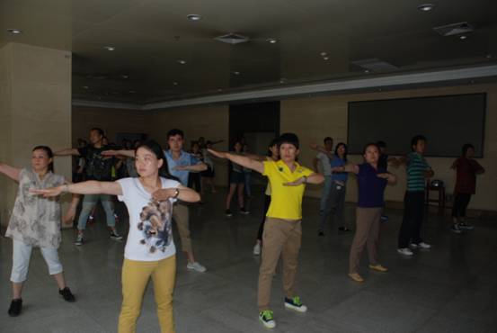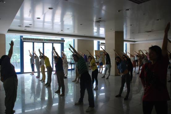 發(fā)行集團(tuán)公司在開展黨的群眾路線教育實(shí)踐活動(dòng)中,積極響應(yīng)廣大職工群眾訴求,豐富職工文化生活,認(rèn)真貫徹落實(shí)全民健身計(jì)劃,從7月份起,組織本部員工開展了工間操活動(dòng),工間操選用的國家體育總局正式發(fā)布的第九套廣播體操。此項(xiàng)活動(dòng)得到了廣大職工的積極響應(yīng)和熱情參與,大家就近在走廊或辦公室等地,在輕快優(yōu)美的旋律下,認(rèn)真按標(biāo)準(zhǔn)做好每一個(gè)動(dòng)作,舒展四肢、鍛煉身體,消除亞健康狀態(tài)。通過開展工間操活動(dòng),增進(jìn)了廣大職工身心健康,削除了疲勞,提高了工作效率,也培養(yǎng)了員工的團(tuán)隊(duì)精神,營造了和諧健康的企業(yè)文化氛圍。