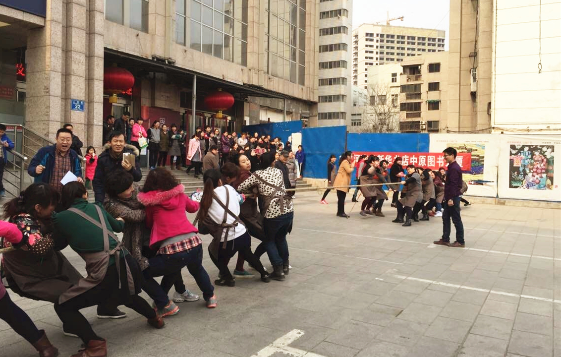 為慶祝“三·八”婦女節(jié),豐富職工的精神文化生活,增強(qiáng)凝聚力和團(tuán)體合作精神,中原圖書大廈于2015年3月8日下午,舉辦了女員工拔河比賽。