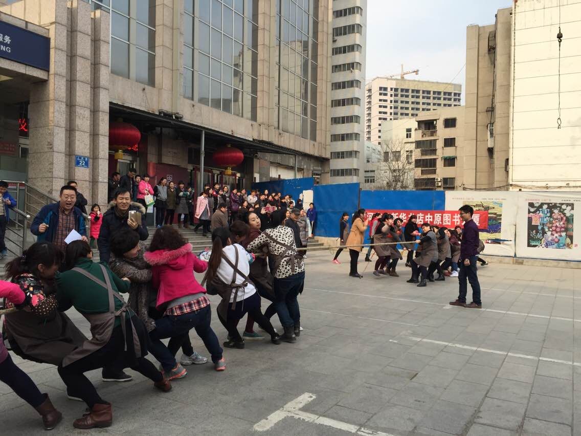 為慶祝“三·八”婦女節(jié),豐富職工的精神文化生活,增強凝聚力和團體合作精神,中原圖書大廈工會分會于2015年3月8日下午3點,舉辦了女員工拔河比賽。